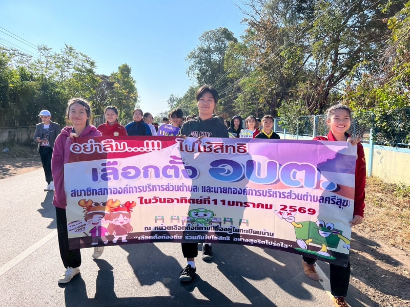 8 ม.ค. 69 อบต.ศรีสุขพร้อมด้วยคณะกรรมการการเลือกตั้งประจำ อบต.ศรีสุข รณรงค์ประชาสัมพันธ์การเลือกตั้งสมาชิกสภาฯ และนายกองค์การบริหารส่วนตำบล...