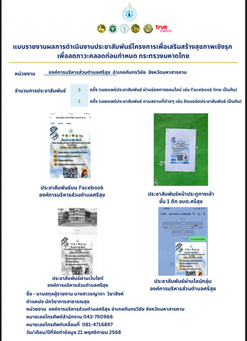 แบบรายงานผลการดำเนินงานประชาสัมพันธ์โครงการเพื่อเสริมสร้างสุขภาพเชิงรุกเพื่อลดภาวะคลอดก่อนกำหนด กระทรวงมหาดไทย