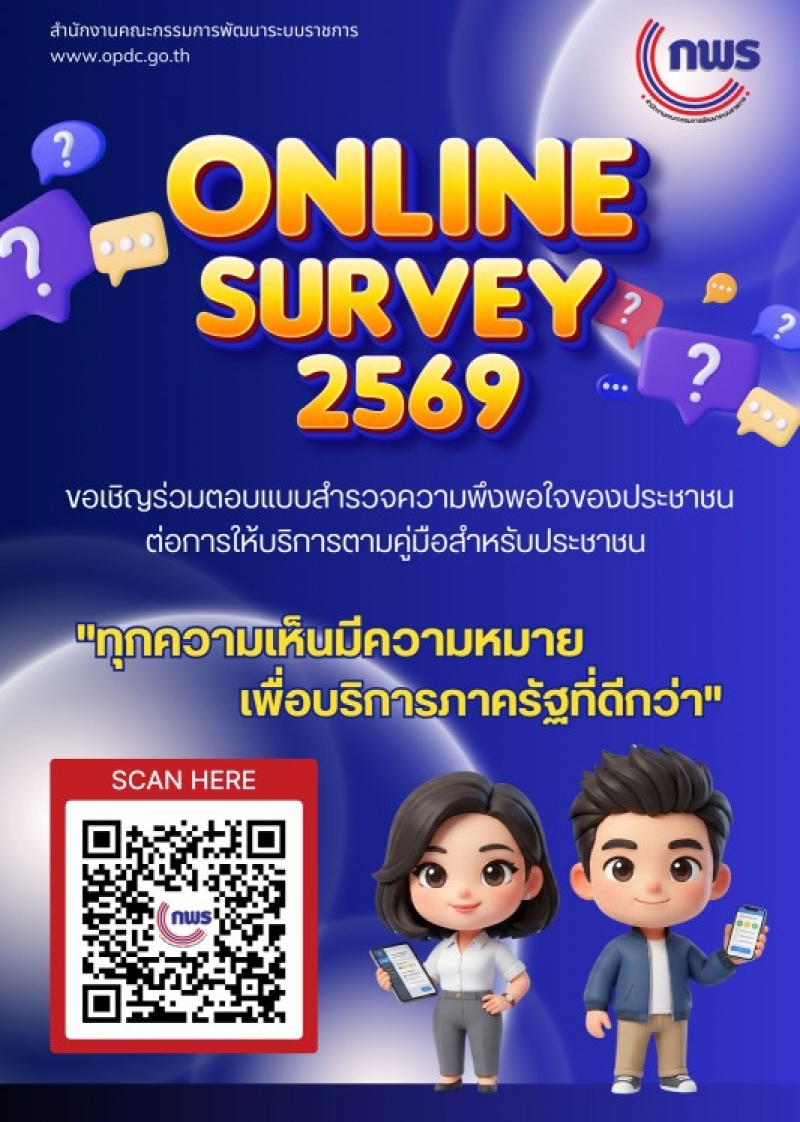 อบต.ศรีสุข ขอเชิญร่วมตอบแบบสำรวจความพึงพอใจของประชาชนต่อการให้บริการของหน่วยงานของรัฐ ปี 2569 ได้ที่ลิงค์ https://eoffice.opdc.go.th/l/29f5322e หรือสแกน QR code ที่ปรากฏ ถึง 31 ส.ค. 69...